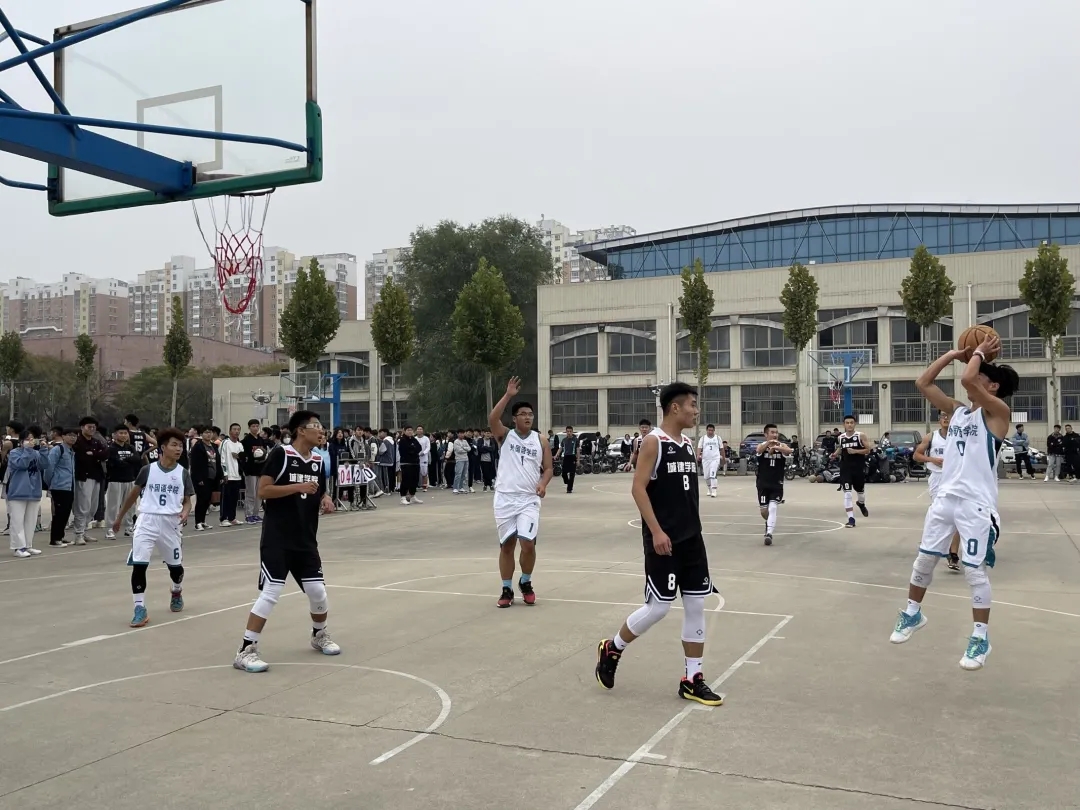 本场比赛由公司对阵城市与建设学院。公司首发阵容为0号焦煜鹏、1号崔浩、3号吴惠友、5号田骏翔、6号鞠照岩。随着裁判一声令下,双方展开激烈角逐。公司球员之间默契传球、完美配合,5号田骏翔展开防守,6号鞠照岩不断躲开对方拦截进行传球,1号崔浩精准投球,赢得观众鼓掌欢呼。场上加油打气声不断,公司队员积极拼搏,但仍以小比分暂时落后。