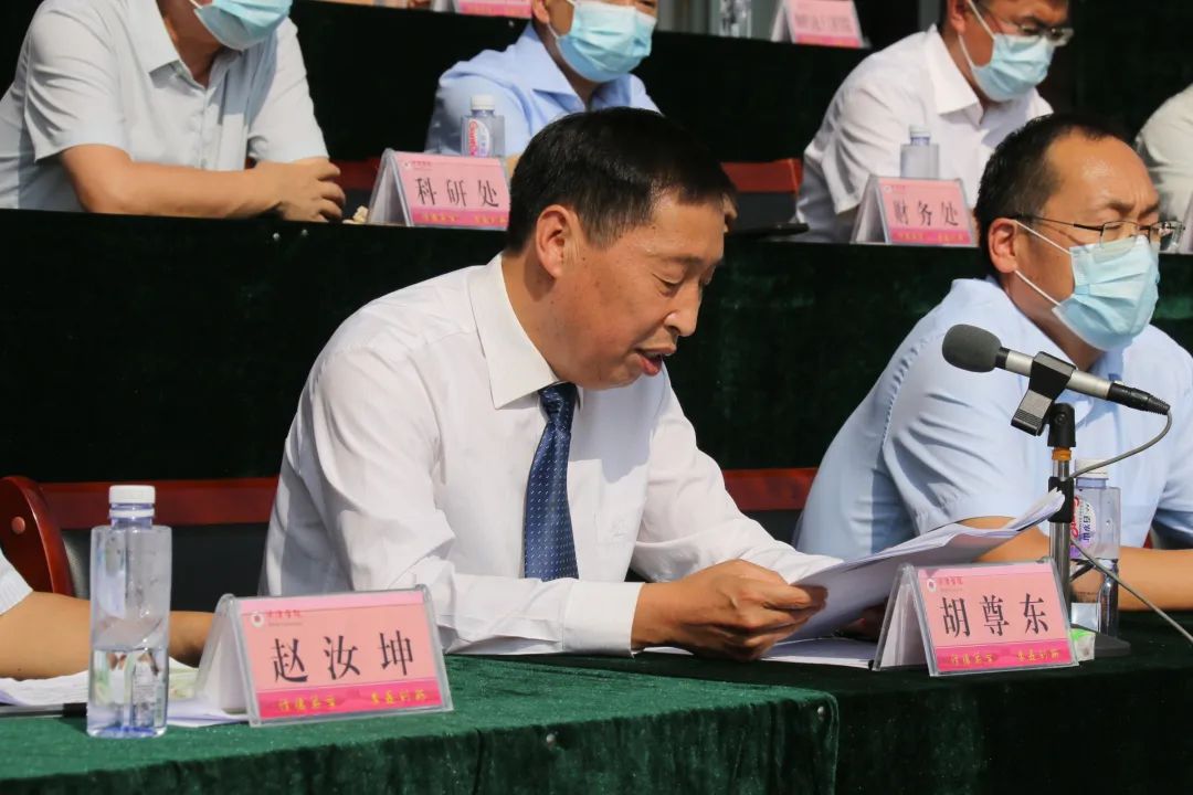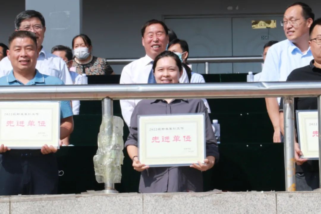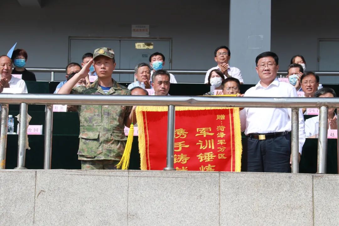 汇演结束后,副董事长胡尊东同志宣读 2022 级新生军训工作先进集体和先进个人表彰决定。公司荣获“军训工作先进单位”“军训工作先进连队”荣誉称号;李玉忠、曹展展老师获得“军训工作优秀指导教师”;公司王媛媛等八名员工荣获“军训优秀学员”荣誉称号。最后,公司党委书记衣玉琛同志代表学校向菏泽军分区赠送锦旗,他代表全校师生对全体新生的到来表示热烈欢迎,向大家圆满完成军训任务表示衷心祝贺,向军训教官表示诚挚感谢。他提到,希望员工在未来学习生活中继续保持军训中树立的严明纪律、发扬军训中养成的优良作风、增强军训中凝聚的集体意识,拼搏出属于自己人生的精彩。
