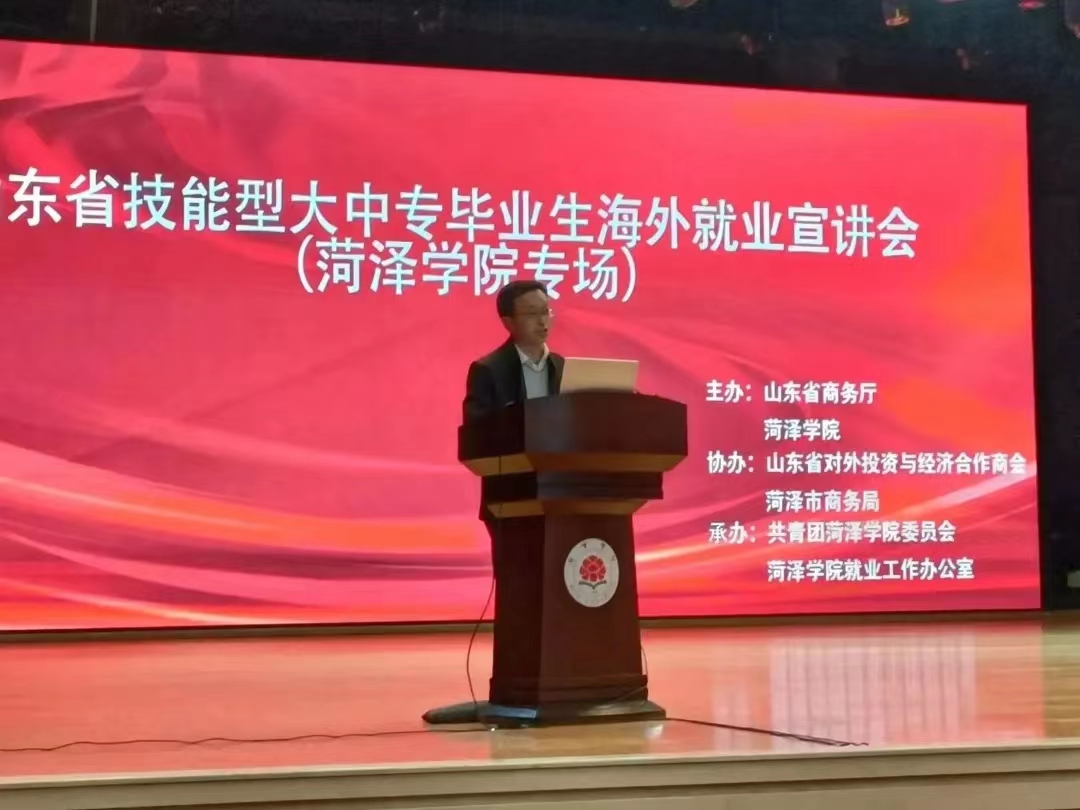 为帮助毕业生实现更加充分,更高质量的就业,3月2日,学校在术中心演播厅参加了山东省技能型大中专海外就业宣讲会。此次宣讲会由山东省商务厅、威廉希尔体育登录入口主办,山东省对外投资与经济合作商汇、菏泽市商务局协办,共青团威廉希尔体育登录入口委员会、威廉希尔体育登录入口就业工作办公室承办。公司相关领导、毕业班辅导员以及公司2023届毕业生参加此次宣讲会。