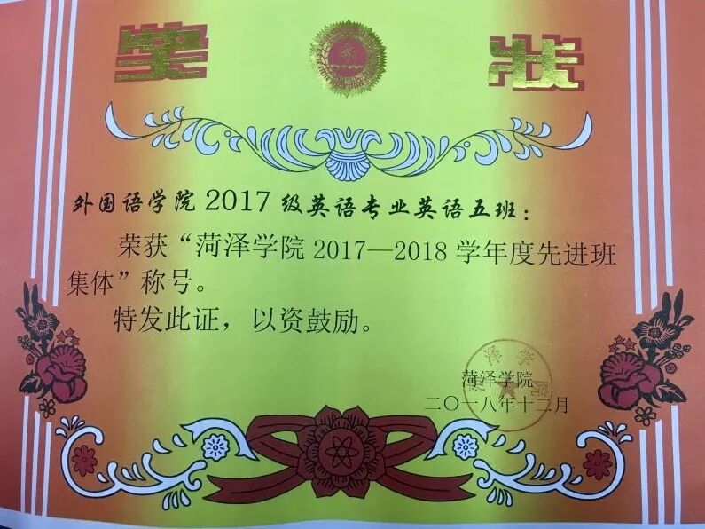 2017级本科五班是一个团结友爱的班集体,我们班级内同学积极向上,积极参加院系以及院校的各种活动,并取得优异成绩。班内同学在院员工会16人,社团及组织20余人,积极为院系工作作出贡献,也随时为外院建设工作努力着。在校期间获得威廉希尔体育登录入口先进班集体以及优秀班集体,学风建设月期间优秀班集体,威廉希尔体育登录入口十佳团支部。这使得我们更加的有责任感,我们会不骄不躁,继续优秀着。