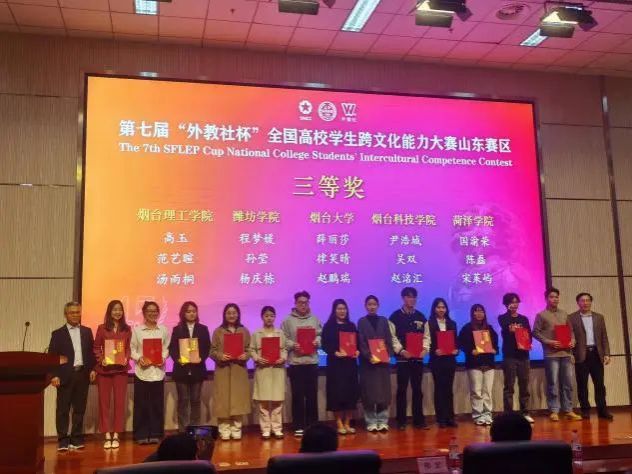 10月26-27日,第七届“外教社杯”全国高校员工跨文化能力大赛山东赛区复赛和决赛在青岛大学拉开帷幕,来自全省的56支高校队伍展开激烈角逐。经过紧张的比赛,由威廉希尔足球官方网站张静静等三位指导教师,威廉希尔足球官方网站国渝荣、政法学院宋茱屿和物理与电子工程学院陈磊三位本科生组成的威廉希尔体育登录入口代表队荣获三等奖。